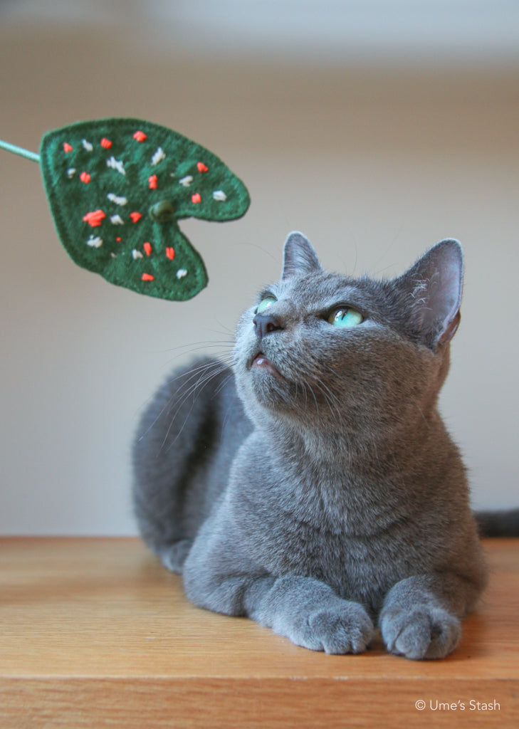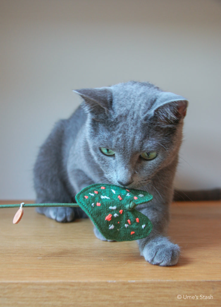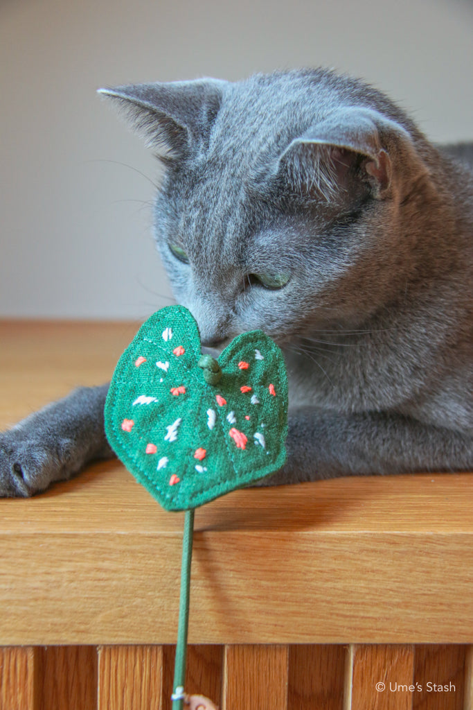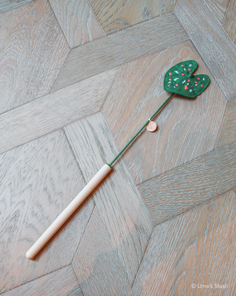 Great for chasing, pawing and smacking: The Caladium leaf teaser flaps enticingly like the leaves that cats love, but can’t eat (for their own sake). Swish it around, play hide-and-seek with it, dangle it in the air for them to pounce on – the options for playtime are unlimited.
