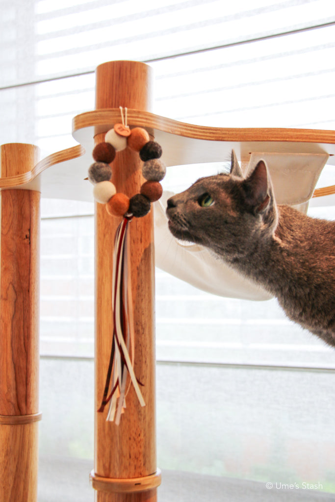 More fun for your cats: Enticing fluttering strings on a woolen ball ring with a matabi scent will add a new element of fun to your existing cat tree or anywhere in your house.