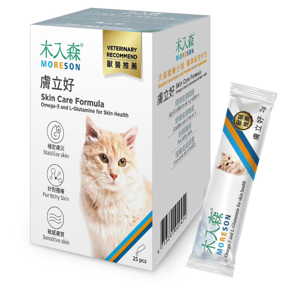 Both Moreson's Cats Skincare Formula and Refined Fish Oil contain a cat’s daily required dose of omega-3, as such, please feed only one each day for your cat.