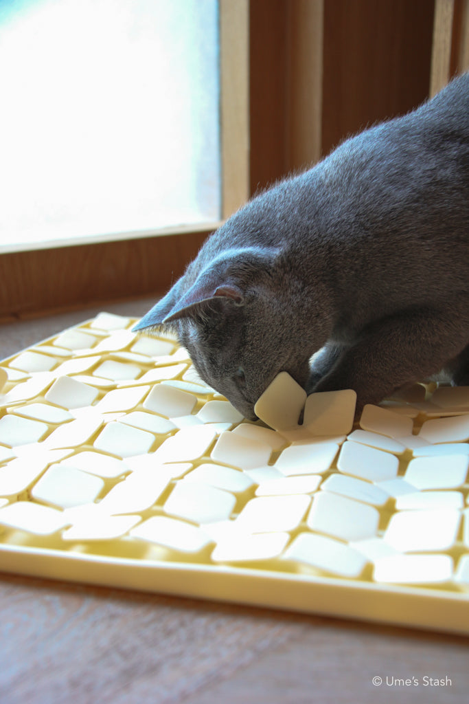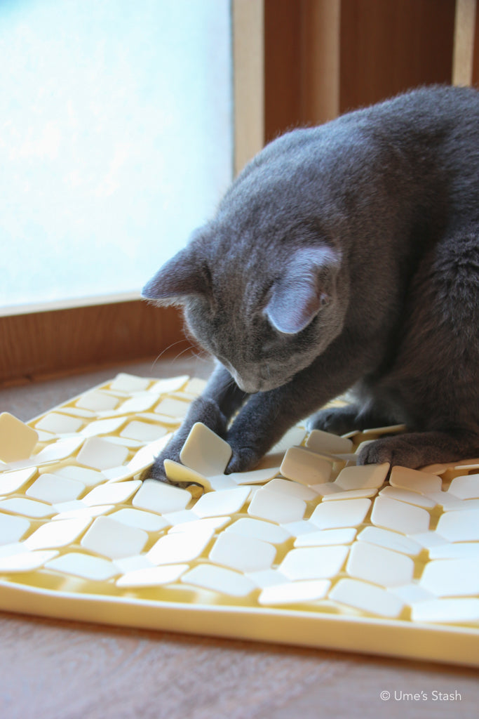 A simple but mentally enriching playmat from Buddyboo (KR) to stimulate and reward your cats!