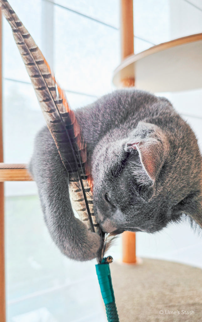 Hand held feather toy: With a 40cm feather and a 15cm handle, the Silkie feather wand toy lets you enjoy close play with your cats.