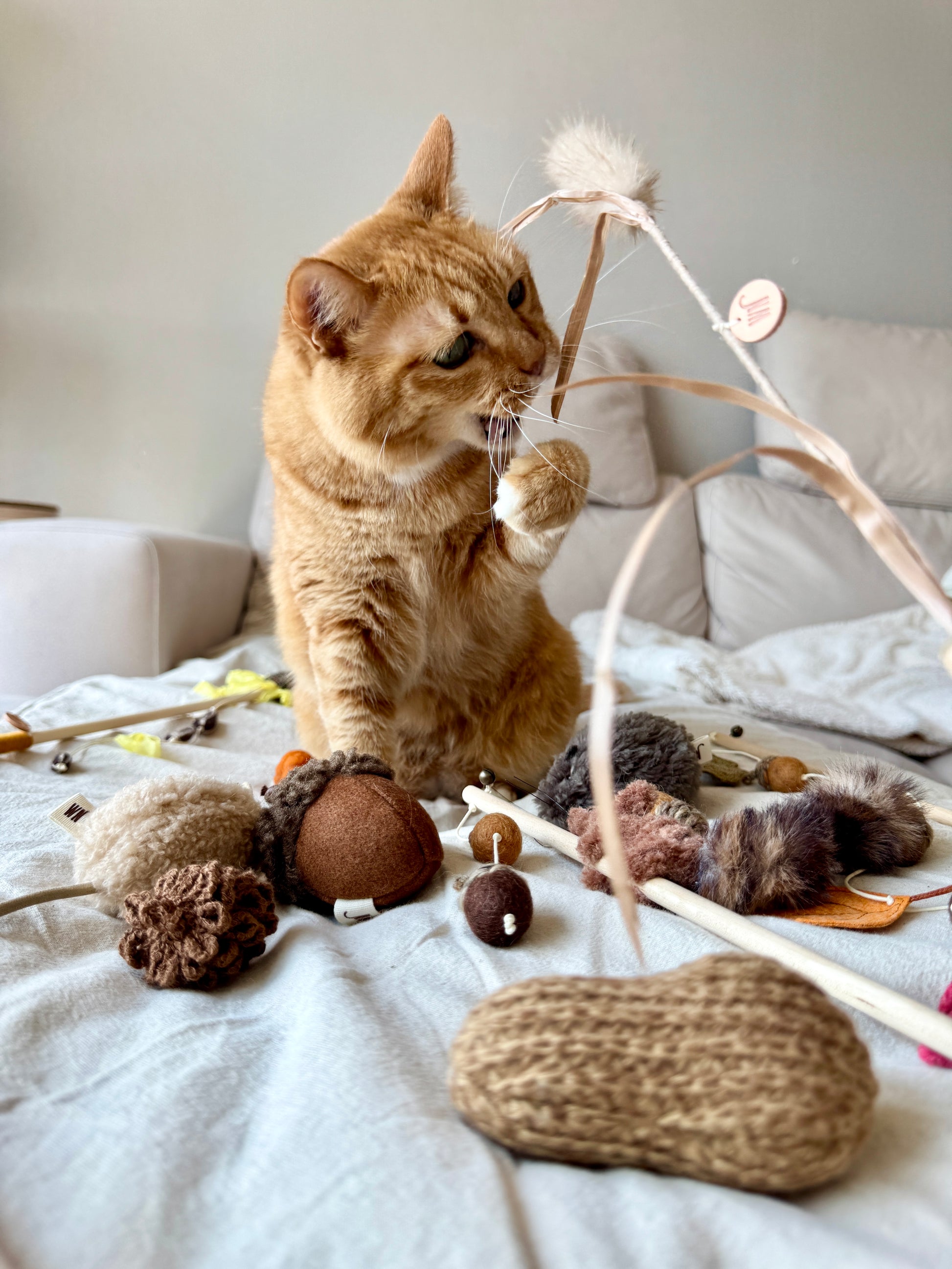 Note: Teaser wands and feather toys playtime should be supervised. Always be careful not to let your cat swallow toys such as strings, feathers, and bells. They should be kept away safely after play, which will also keep cats interested in the toys for a long time to come.