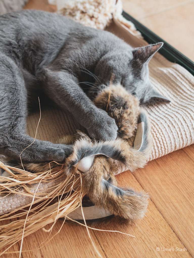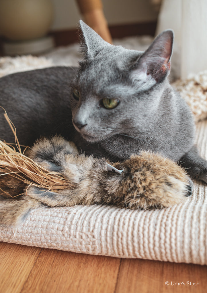 Seperti mangsa sebenar: Bola bulu arnab sebenar yang akan mencetuskan naluri pemangsa kucing. Tonton mereka gila mengejar bola ini.