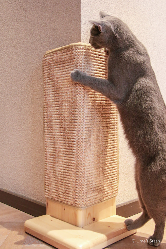 Stabil, kukuh dan tahan lama: Diperbuat daripada kayu padu dengan tapak berwajaran yang akan menahan walaupun sesi menggaru yang paling kuat. Dengan kualiti yang baik dan tikar sisal yang ditenun dengan baik yang tahan terhadap kuku paling tajam, tiang itu akan menemani kucing anda selama bertahun-tahun yang akan datang.