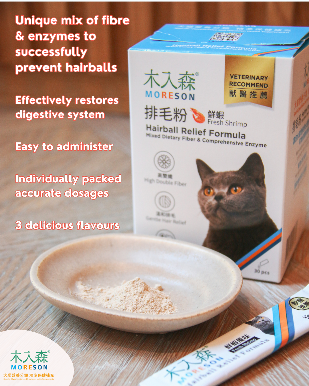 Introducing Moreson (Taiwan)’s cat supplements - formulated specifically for cats with accurate dosages. With human-grade ingredients and manufactured by a company with long experience in producing human food supplements.