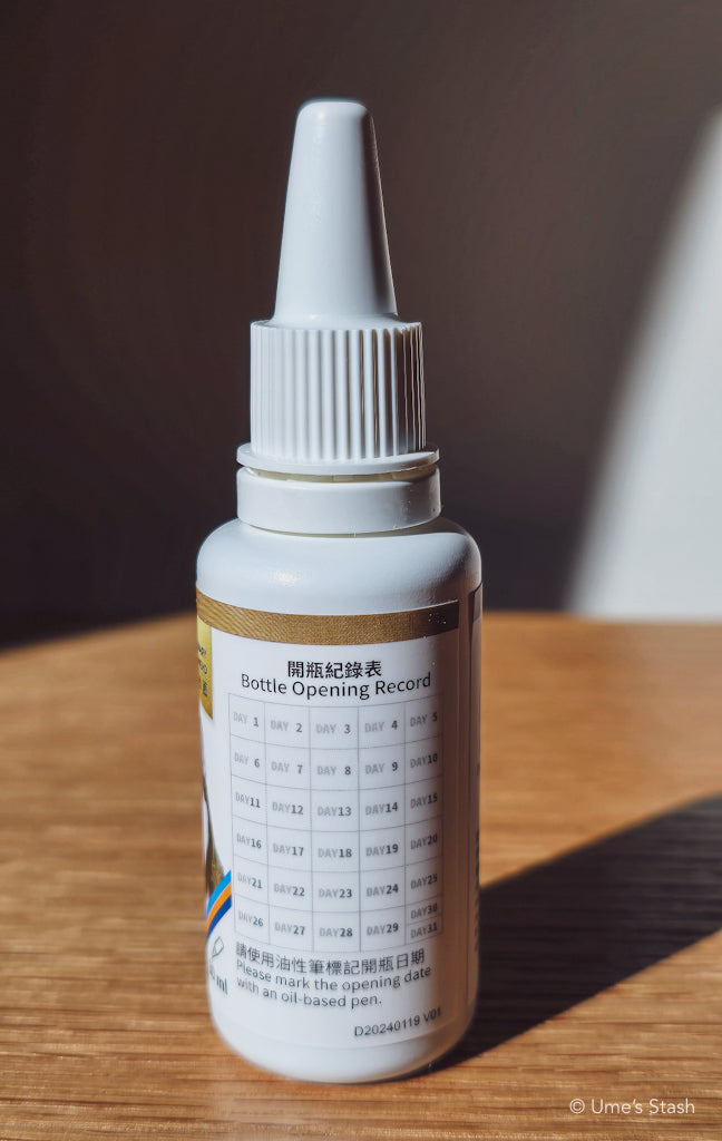 Storage: Store in a cool and dark place or in fridge. Expiry date indicated on box. Use within one month of opening bottle.