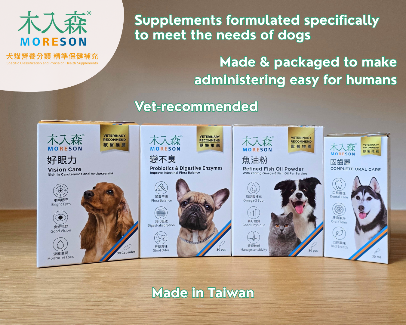 Highest quality and standards: Manufactured by a biotechnology company that produces both human and pet supplements, Moreson adopts the highest manufacturing standards to ensure the safety and health of your pets.