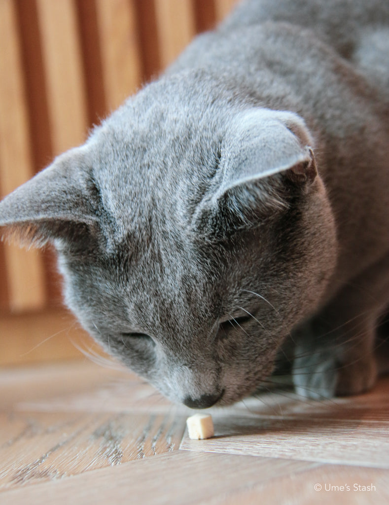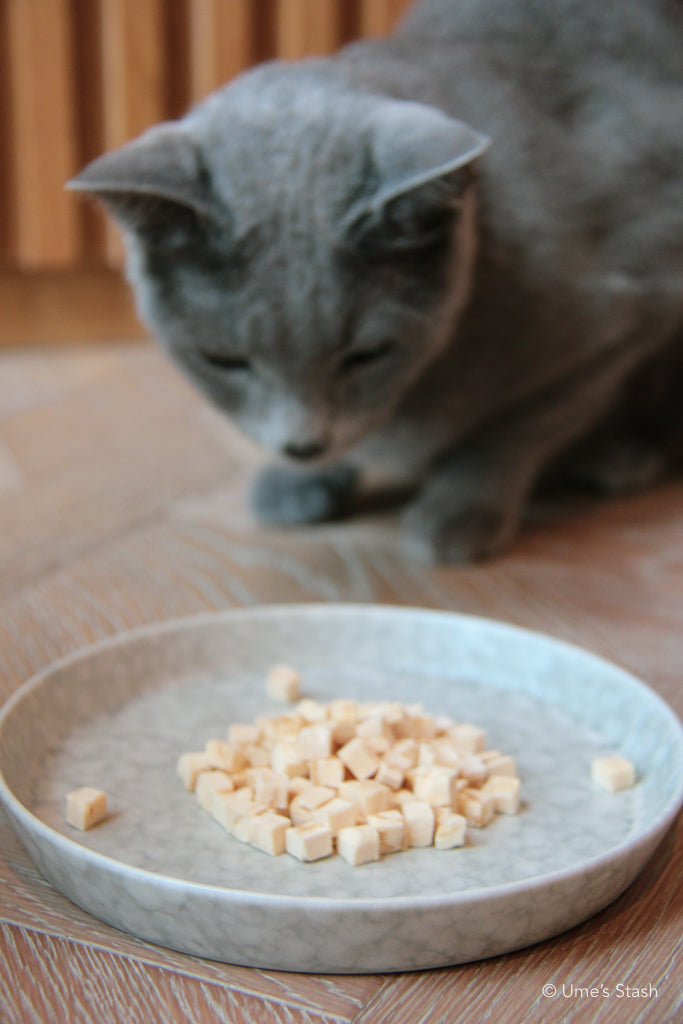 As cat or small dog parents, it was a challenge to find healthy single-protein treats that were size suitable for our babies. We were just tired of seeing our babies choke on and regurgitate overly large treats or having to tear them apart messily ourselves. Too large treats also meant a large calorie intake per treat and obesity issues!